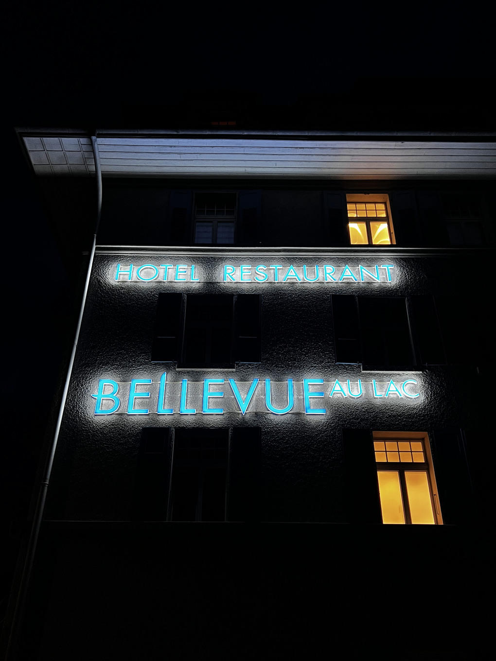 urSIGN realisiert die neue Leuchtschriften beim Hotel Bellevue au Lac in Hilterfingen.