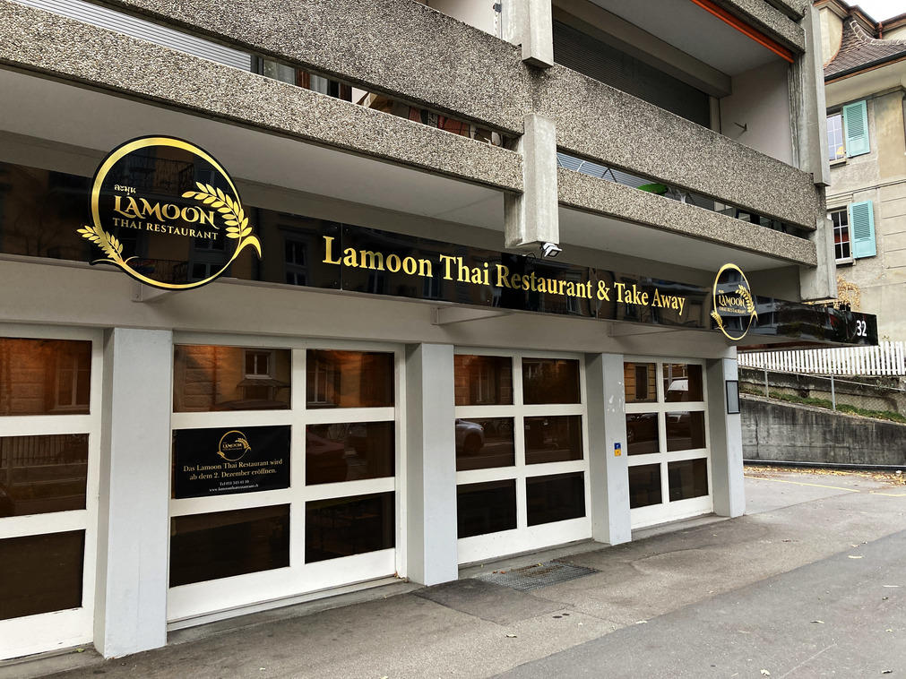 urSIGN realisiert die neue Beschriftung für das Lamoon Thai Restaurant in Bern.