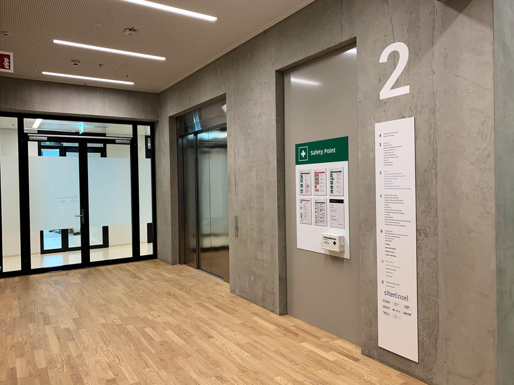urSIGN realisiert in Zusammenarbeit mit Q-Turn die neue Signaletik im sitem insel Gebäude in Bern.