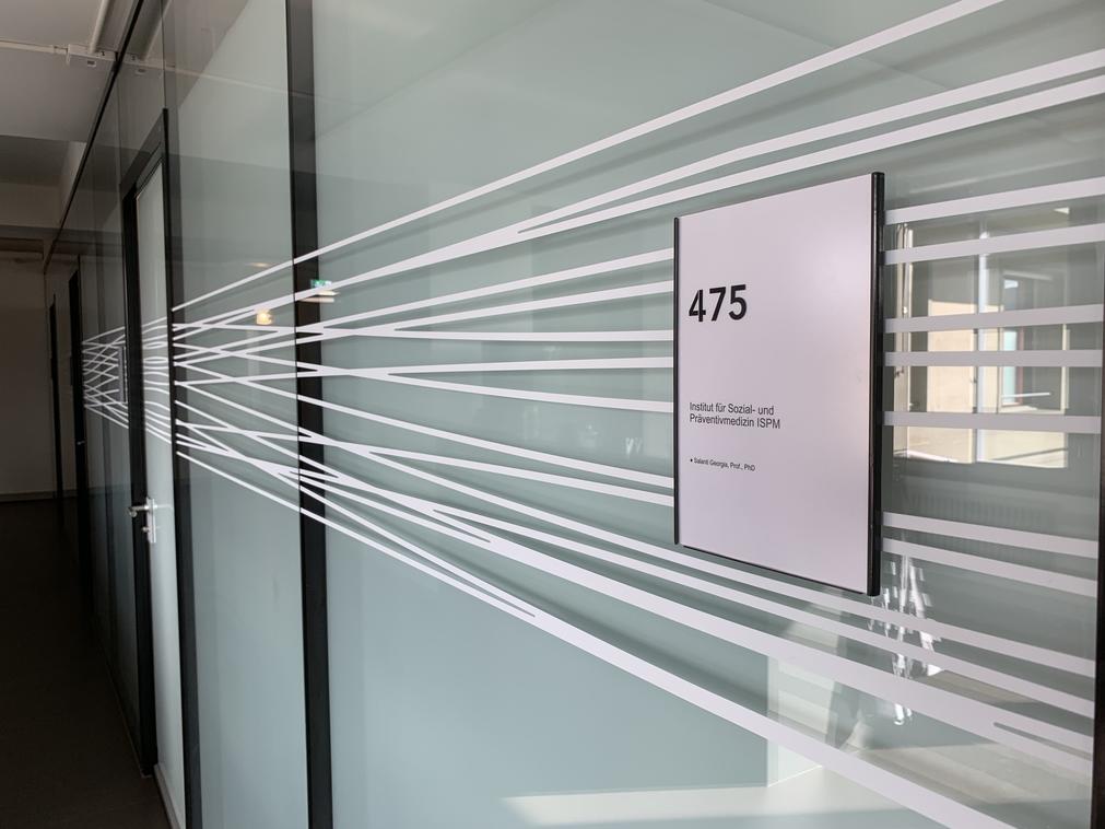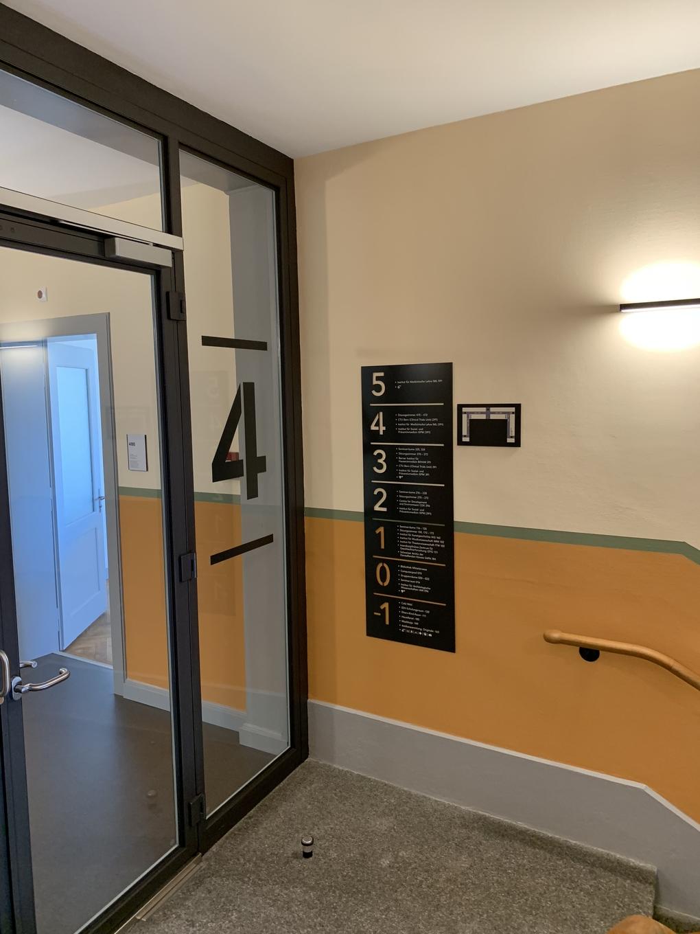 urSIGN realisiert in Zusammenarbeit mit nulleins die neue Signaletik in der Universität Bern an der Mittelstrasse. Die Signaletik besteht aus Schildern mit negativ ausgelaserten Elementen, Beschriftungen, Stechschildern und 3D Elementen.